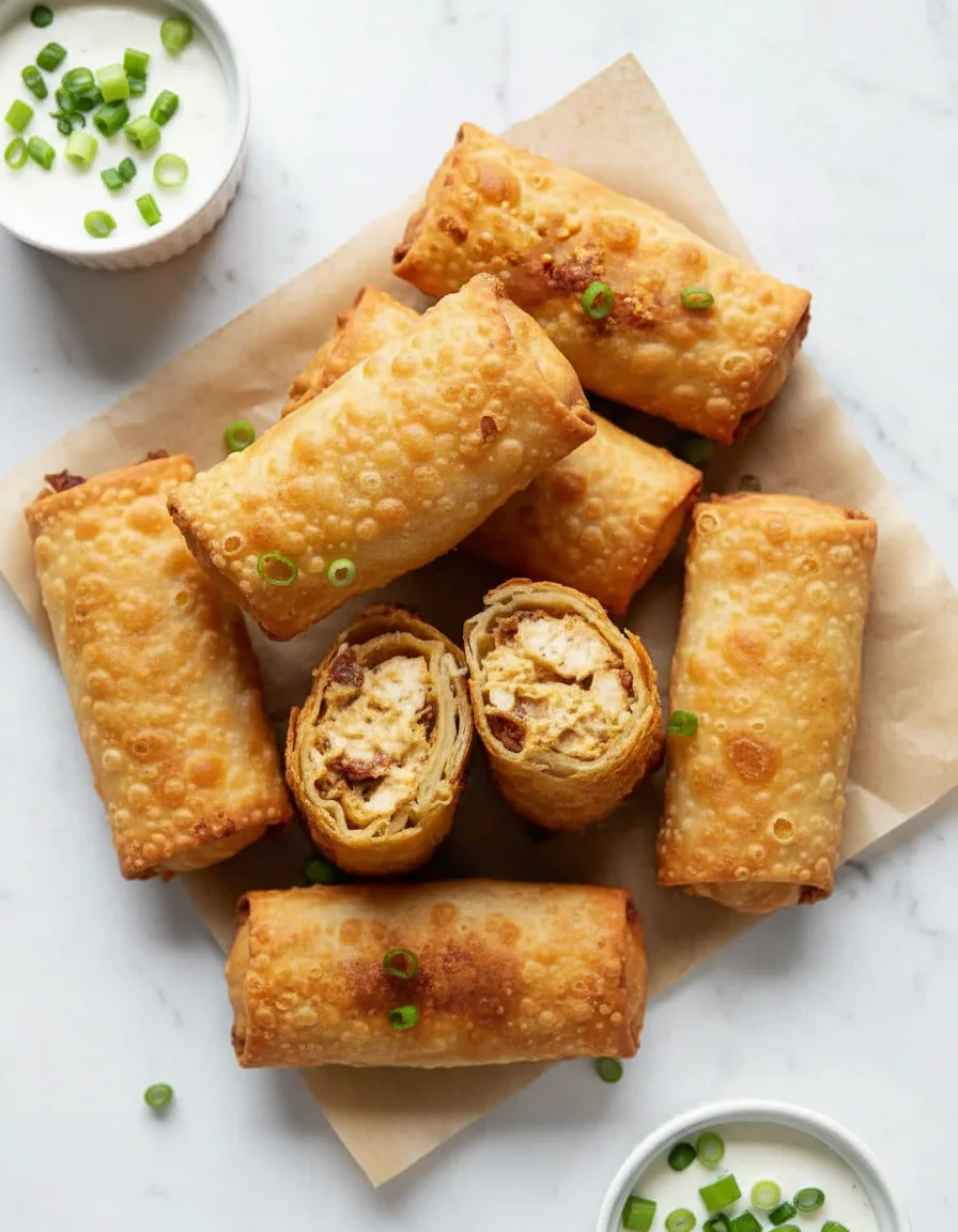 Crispy air fryer egg rolls filled with creamy cheese, turkey bacon, and mild jalapeños – perfect party appetizers with just the right kick!