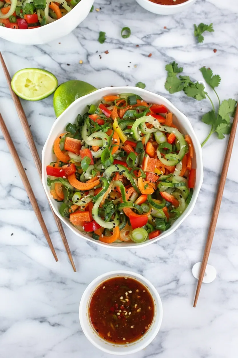 If you love spice, increase the red pepper flakes or add a drizzle of chili crisp or sriracha to the dressing. For an herbal twist, try adding fresh mint or Thai basil along with the cilantro. You can even swap the base vegetable; try making zucchini noodles or adding shredded cabbage for a different crunch.
