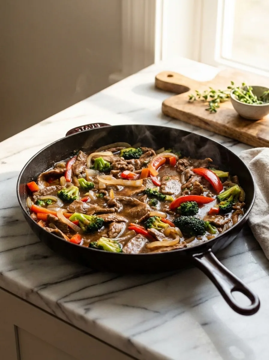 Quick and flavorful beef stir fry with crisp vegetables in a savory-sweet sauce