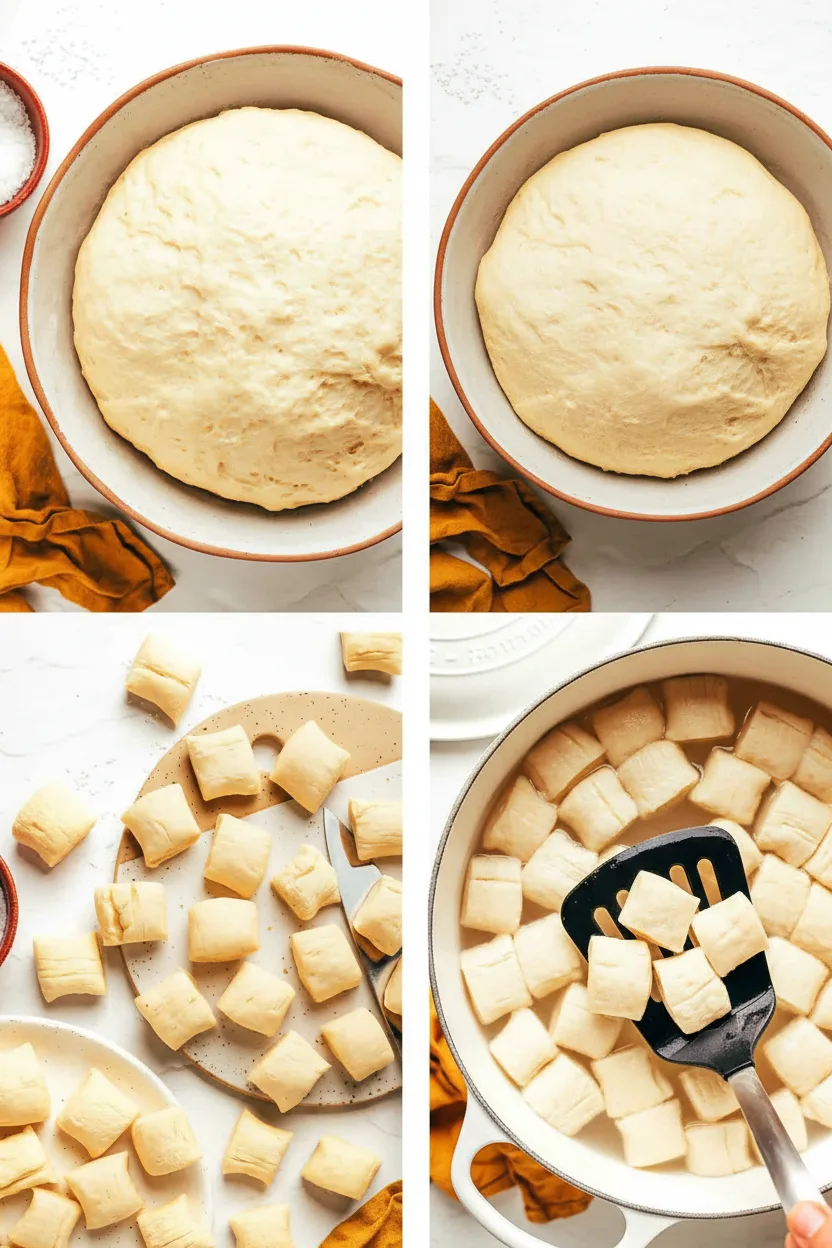 - Divide dough into 12 equal pieces. Roll each piece into 3/4-inch wide ropes then cut into 1-inch long bites.