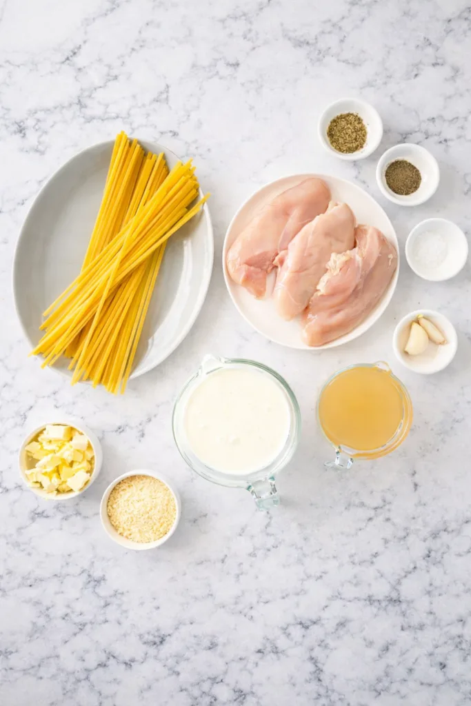 Perfect for busy weeknights, this slow cooker version creates tender chicken and perfectly cooked pasta coated in a luscious garlic-Parmesan sauce. Your family will request this hearty meal again and again!