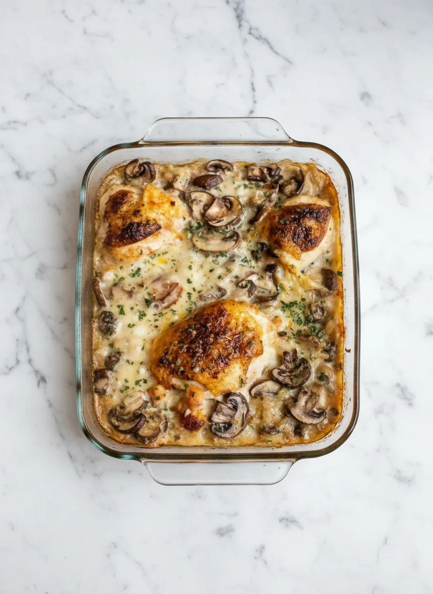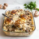 With simple preparation and hands-off baking, you’ll create a meal that feels like a warm hug. The crispy chicken skin, creamy sauce, and perfectly cooked rice combine textures and flavors beautifully.