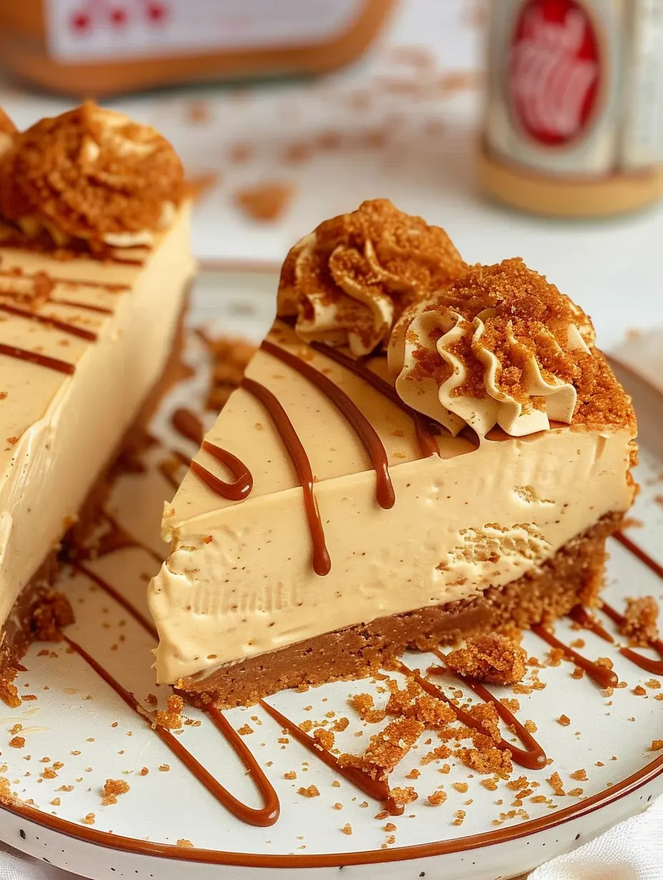 A stunning no-bake cheesecake with a spiced Biscoff biscuit crust, creamy Biscoff filling, and a glossy caramelized topping.