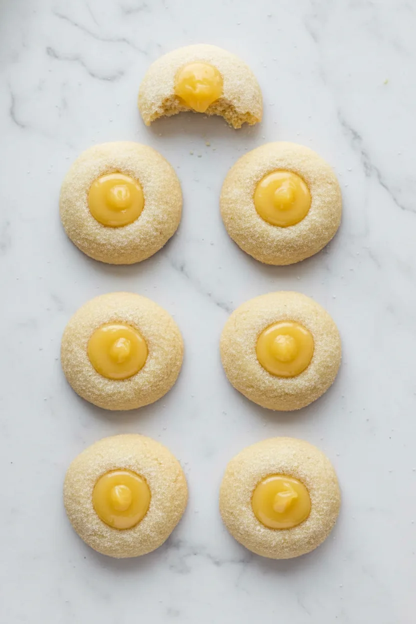 Bake until edges turn pale golden, about 12 minutes. Immediately make indentations while cookies are still soft. A wooden spoon handle works perfectly. Fill each warm cookie with lemon curd. For more dessert inspiration using citrus elements, explore our lemon yogurt cake recipe with delightful tangy notes.