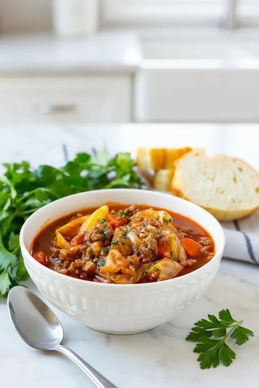 Discover the delicious simplicity of cabbage roll soup – all the classic flavors without the fuss! This hearty dish combines tender ground beef, wholesome vegetables, and comforting rice in a rich tomato broth. Perfect for busy weeknights or chilly weekends, it brings warmth to any table in just 45 minutes. Let’s explore this satisfying one-pot wonder that transforms traditional cabbage rolls into an easy-to-make soup.