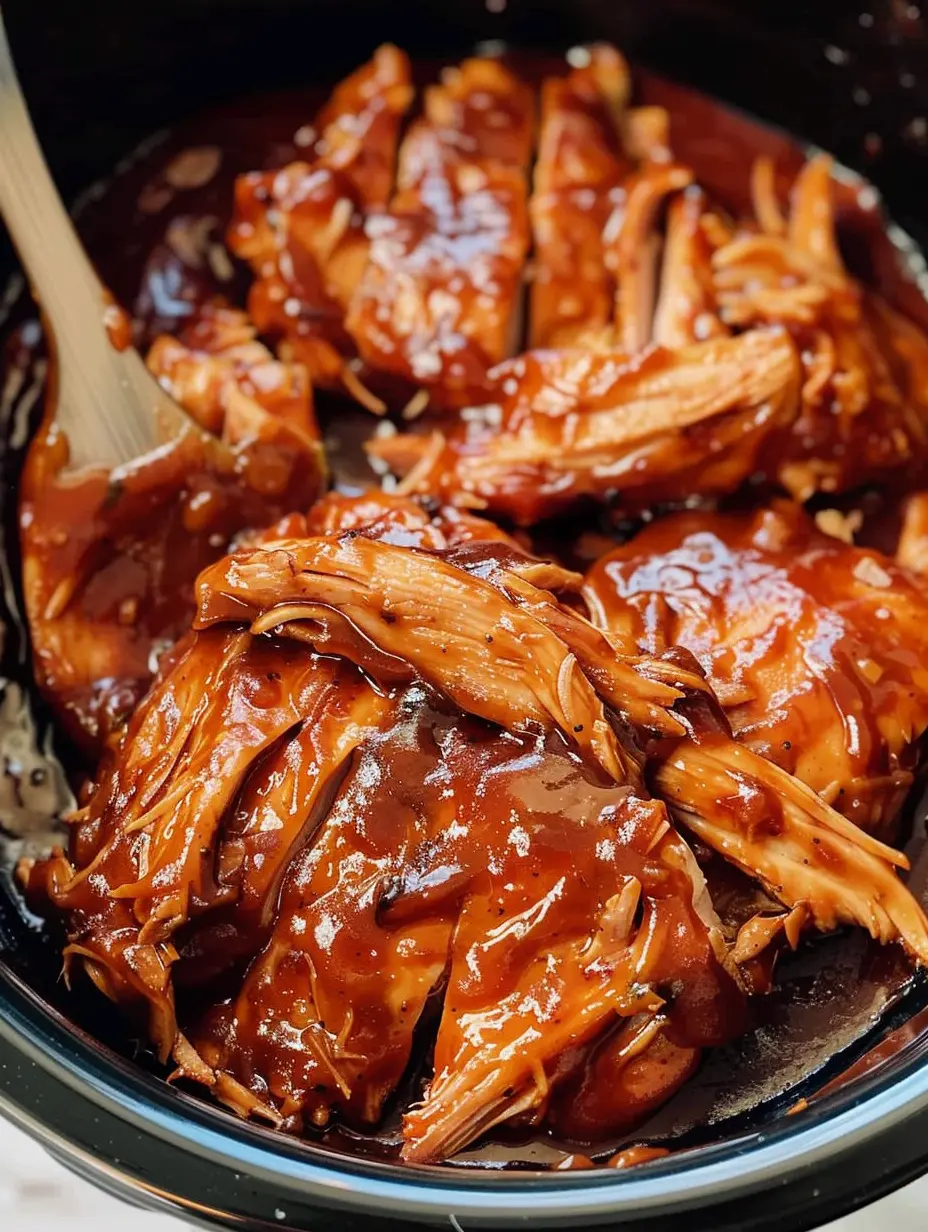Tender, juicy shredded chicken cooked low and slow in a sweet and tangy homemade BBQ sauce. The ultimate easy, hands-off dinner for sandwiches, tacos, bowls, and more.
