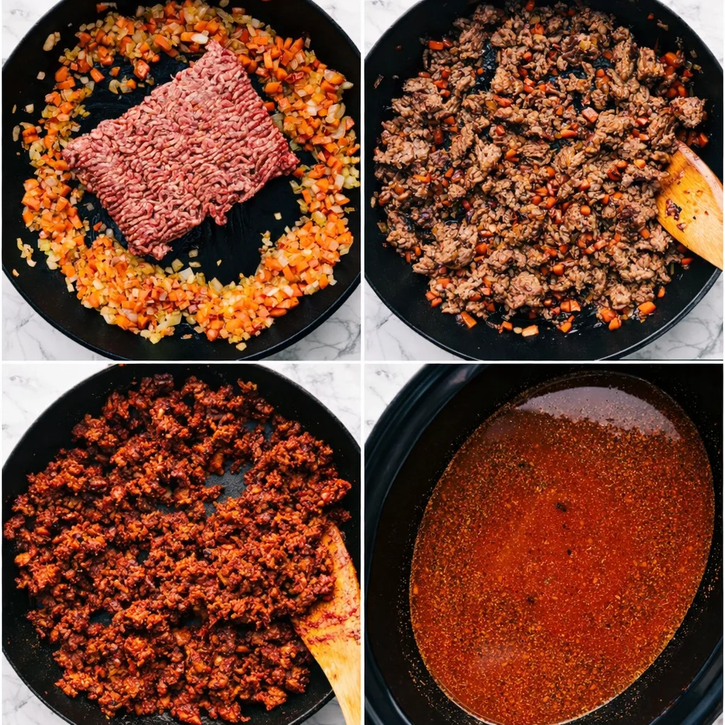 Transfer everything from the skillet to your crockpot. Add remaining broth, Italian seasoning, and crushed fennel seeds. Cover and cook either 6-7 hours on low or 3-4 hours on high. This extended simmer allows flavors to meld beautifully.