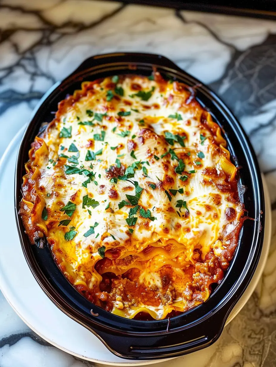 Once cooking is complete, let the lasagna sit for 10-15 minutes with the lid off to set slightly. This makes it easier to slice. Garnish with chopped fresh basil or parsley for a pop of color and freshness. Serve generous portions directly from the crockpot.
