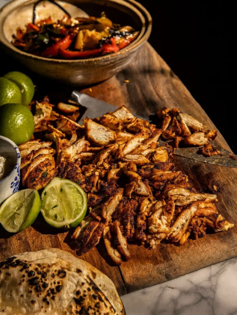These fajitas have everything, sweet bell peppers, a kick of poblano, and juicy slices of seasoned chicken all roasted together until perfectly charred.