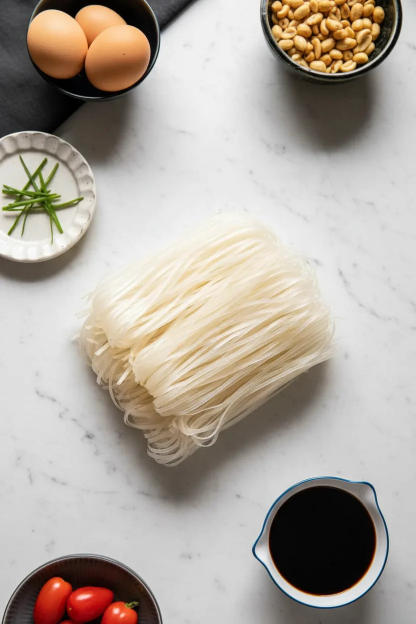 - Pad Thai Noodles: Use 6 ounces of wide rice noodles. You can also use linguine-style rice sticks.