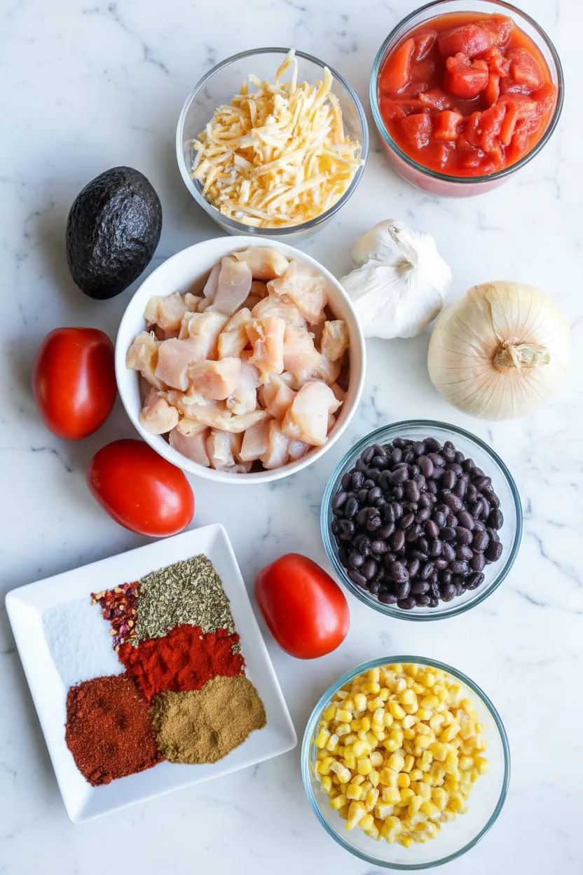 Chop the chicken breast into uniform 1-inch pieces for even cooking. Dice the onion and mince garlic first—this ensures aromatics release maximum flavor. Then dice your fresh Roma tomatoes and avocado for the finishing touch. Keep everything separated until cooking time.