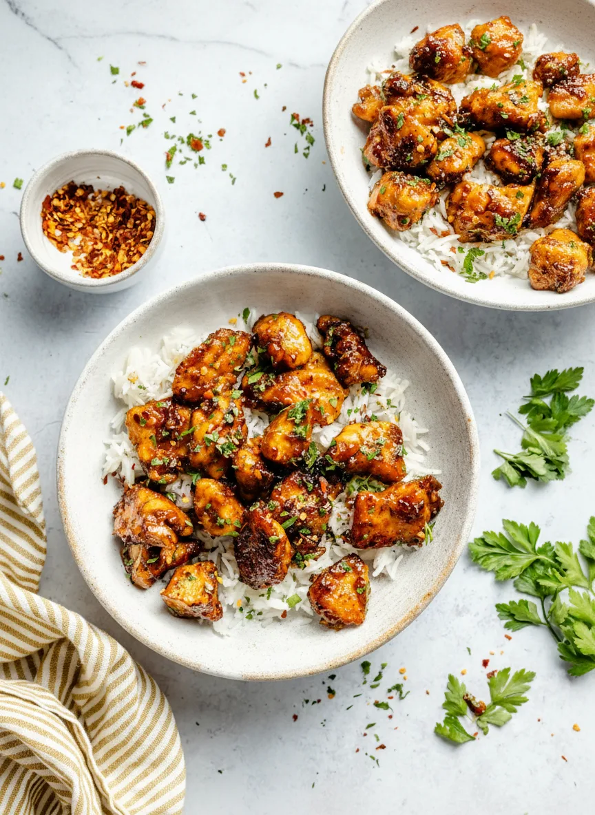 Irresistible bite-sized chicken coated in a sweet and spicy honey garlic glaze, ready in just 20 minutes.