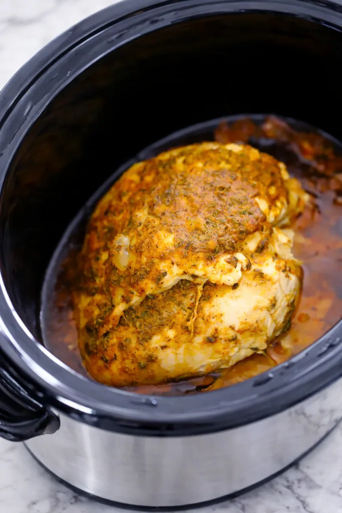 Perfectly tender and juicy boneless turkey breast cooked effortlessly in your slow cooker with flavorful herbs and spices.