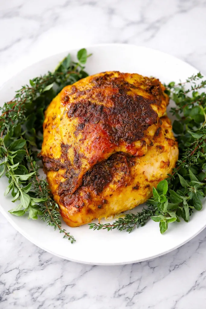 - Optional: For crispy skin, transfer turkey to baking sheet and broil for 5-10 minutes until desired crispiness.