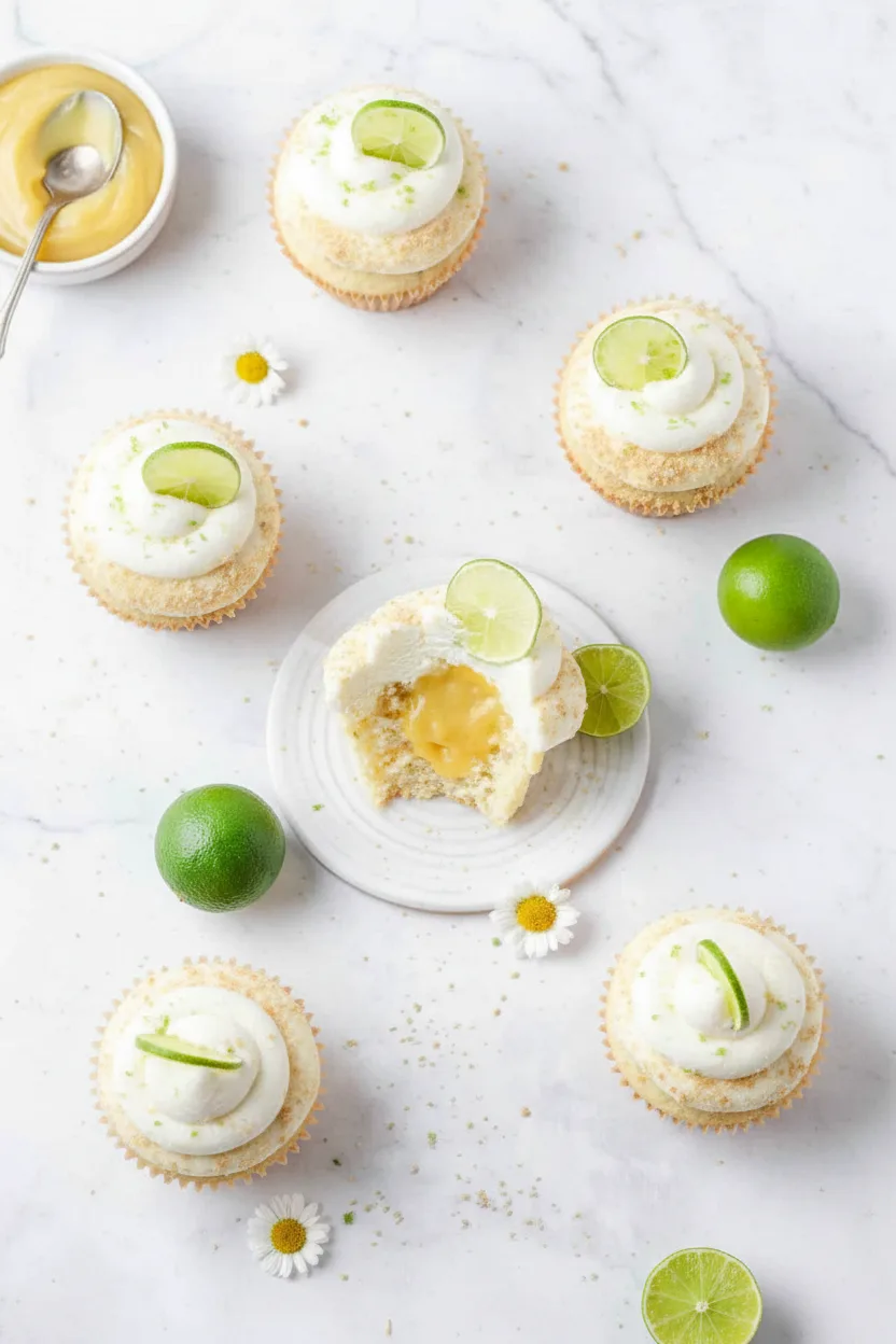 - Assemble: Cut a small hole in the top of each cooled cupcake. Fill each with chilled key lime curd.