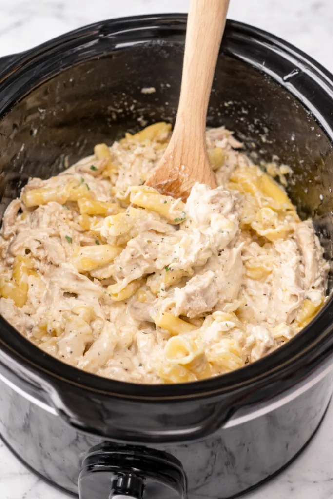 Al dente isn’t the goal here. Creamy comfort pasta often has softer texture after slow cooking. Nonetheless, for firmer noodles, reduce cooking time and check frequently.