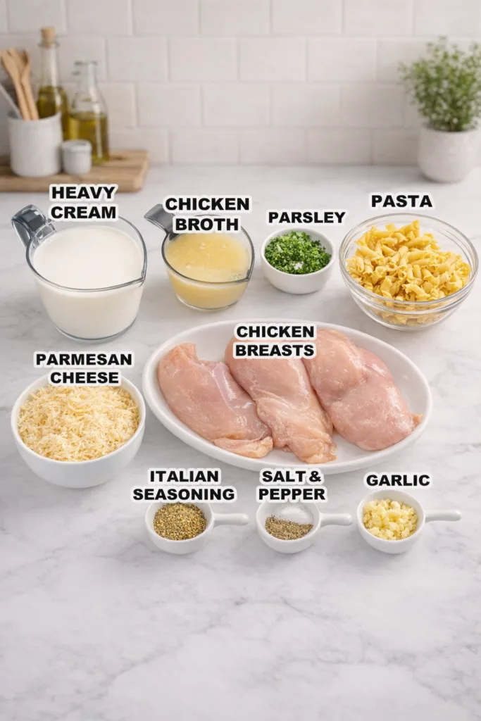 Every component plays an important role. Chicken breasts keep things lean, while the creamy sauce coats everything in indulgent richness. Italian seasoning adds aromatic warmth, and fresh parsley brightens each bite.