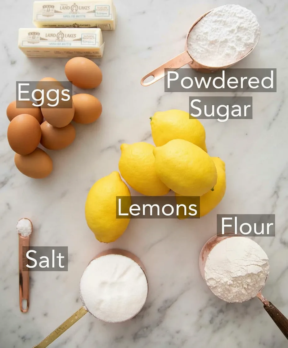The crust and filling rely on a few key staples. You will need all-purpose flour, powdered sugar, and salt for the shortbread base. Butter provides richness and helps everything hold together. For the filling, fresh lemons are essential. You need both the zest and the juice. Granulated sugar sweetens the custard, and eggs give it structure. Check your pantry before you begin. Having everything measured and ready makes the process smooth and enjoyable.