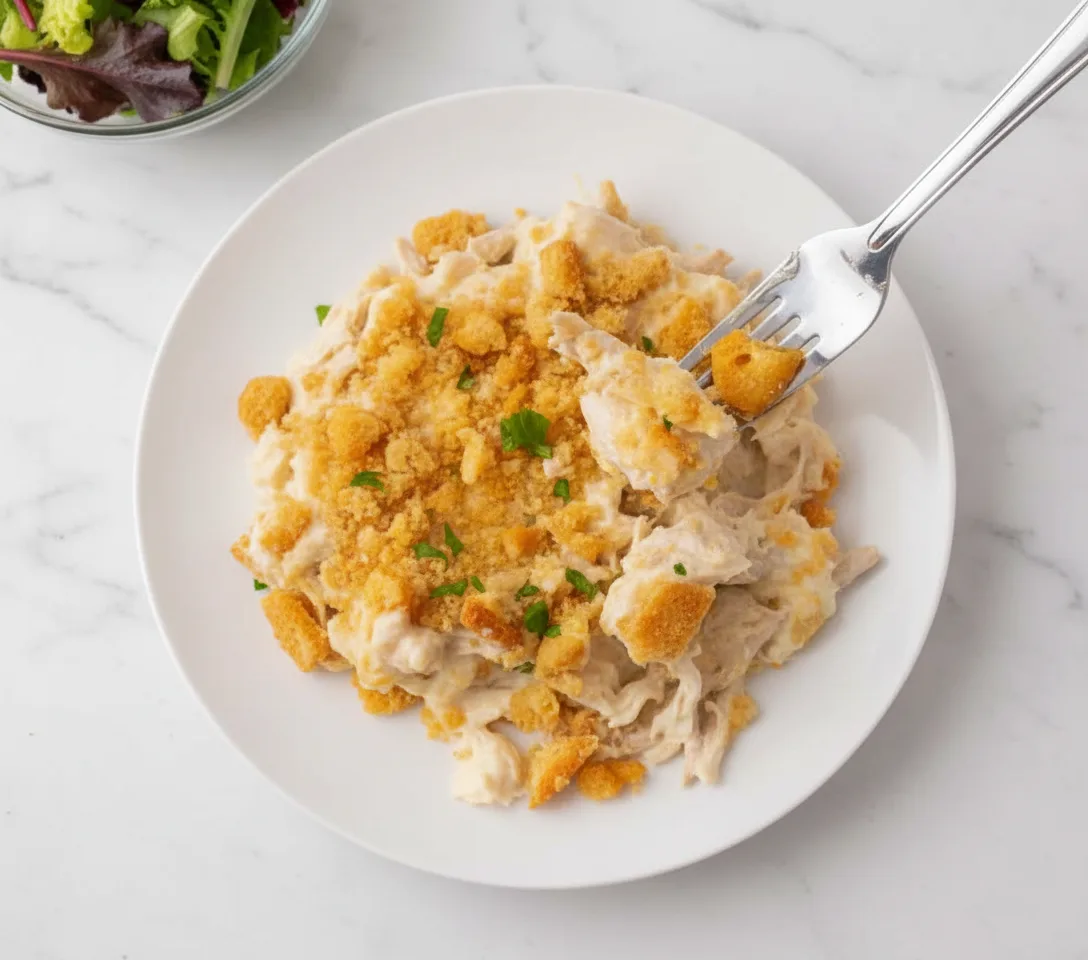 This Million Dollar Chicken Casserole delivers incredible flavor with comforting familiarity. The creamy chicken base topped with buttery crackers creates texture harmony that feels special enough for guests yet simple enough for Tuesday nights.
