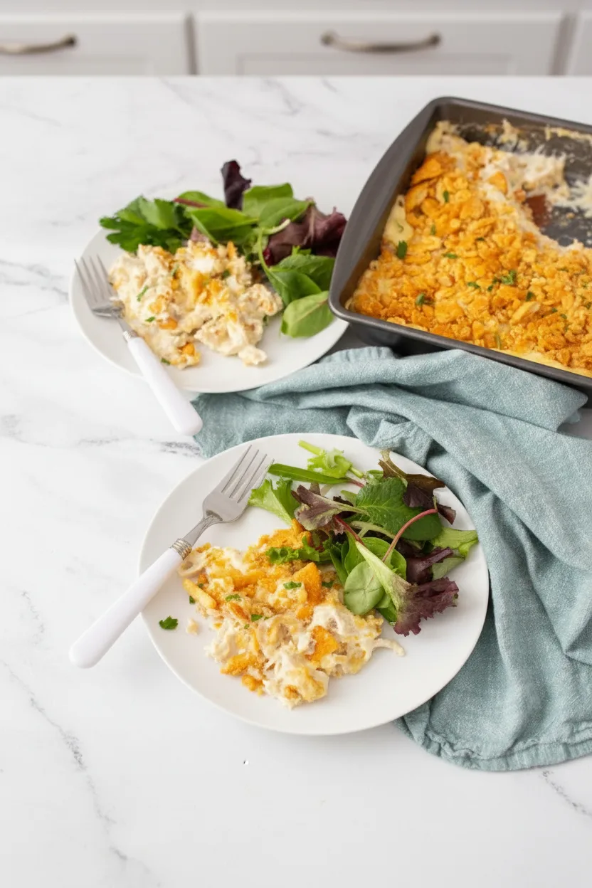 This rich casserole pairs wonderfully with light, fresh sides. Serve crisp green salad tossed with vinaigrette to cut through the creaminess. Steamed green beans or roasted carrots add color and nutrients. For heartier appetites, buttery mashed potatoes or cheesy potato dishes complete the meal perfectly.