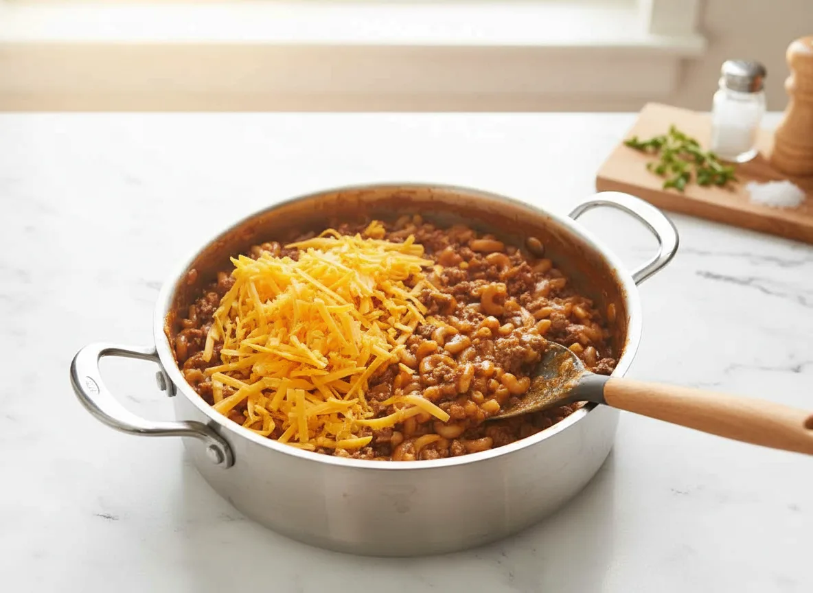 A hearty one-pot meal combining pasta with chili flavors and cheesy goodness, ready in 35 minutes.