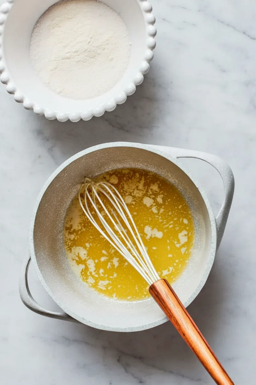 - Gently melt butter in a small saucepan over medium heat. Turn off heat once melted.