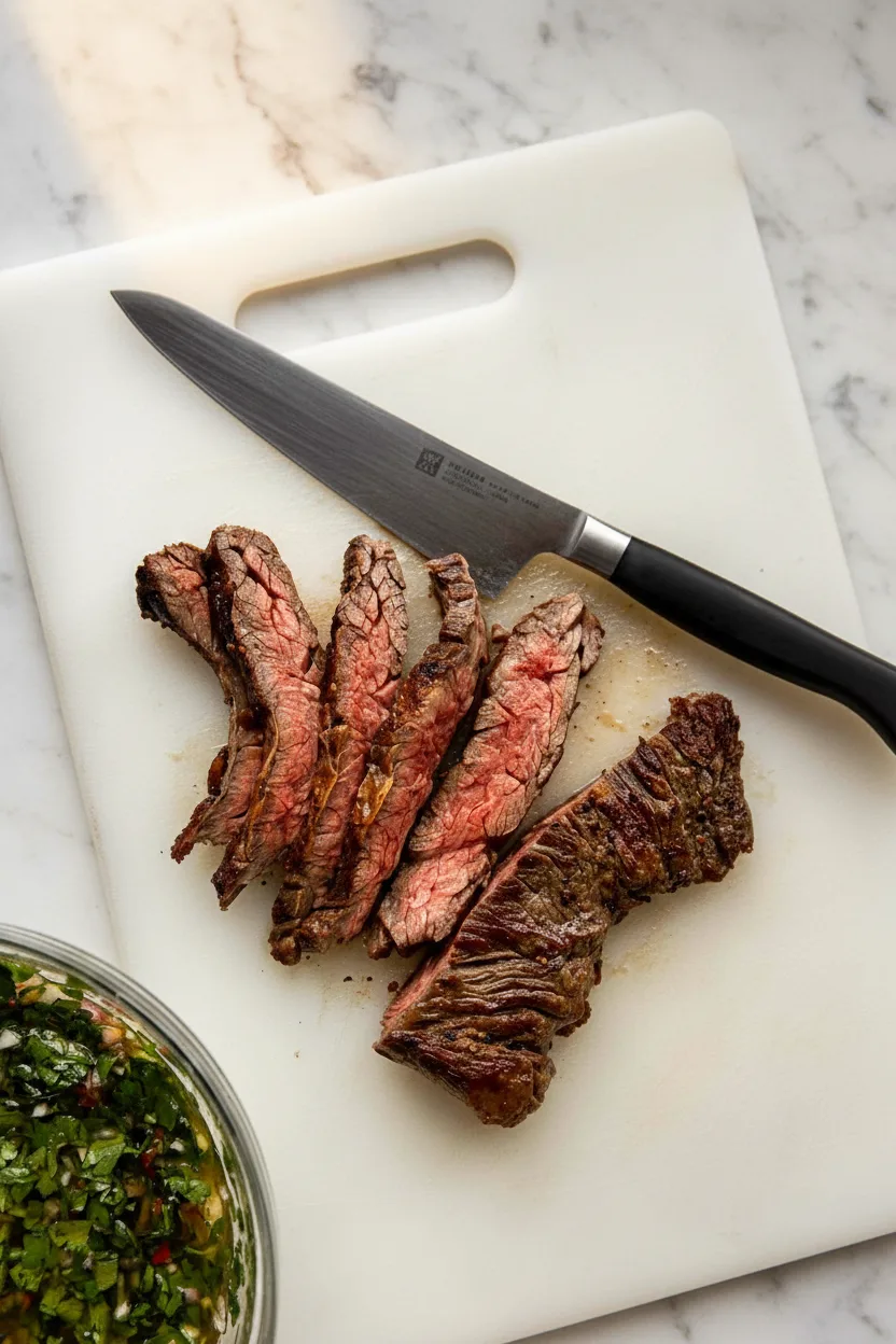 Certain items create the signature taste of this dish. High-heat cooking oil helps achieve the perfect steak sear. Chimichurri sauce brings the essential herbaceous kick. Remember to pick a cut with good marbling for optimal tenderness.