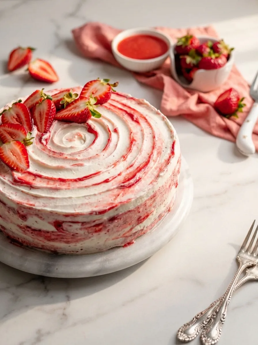 We use strawberries three ways: sliced between layers, blended into syrup, and pureed for extra flavor. This approach gives every bite a natural sweetness that artificial flavors can’t match.