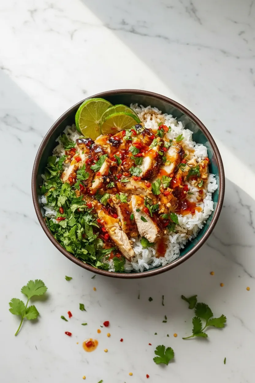 Sweet Chili Chicken Bowl with Coconut Lime Drizzle