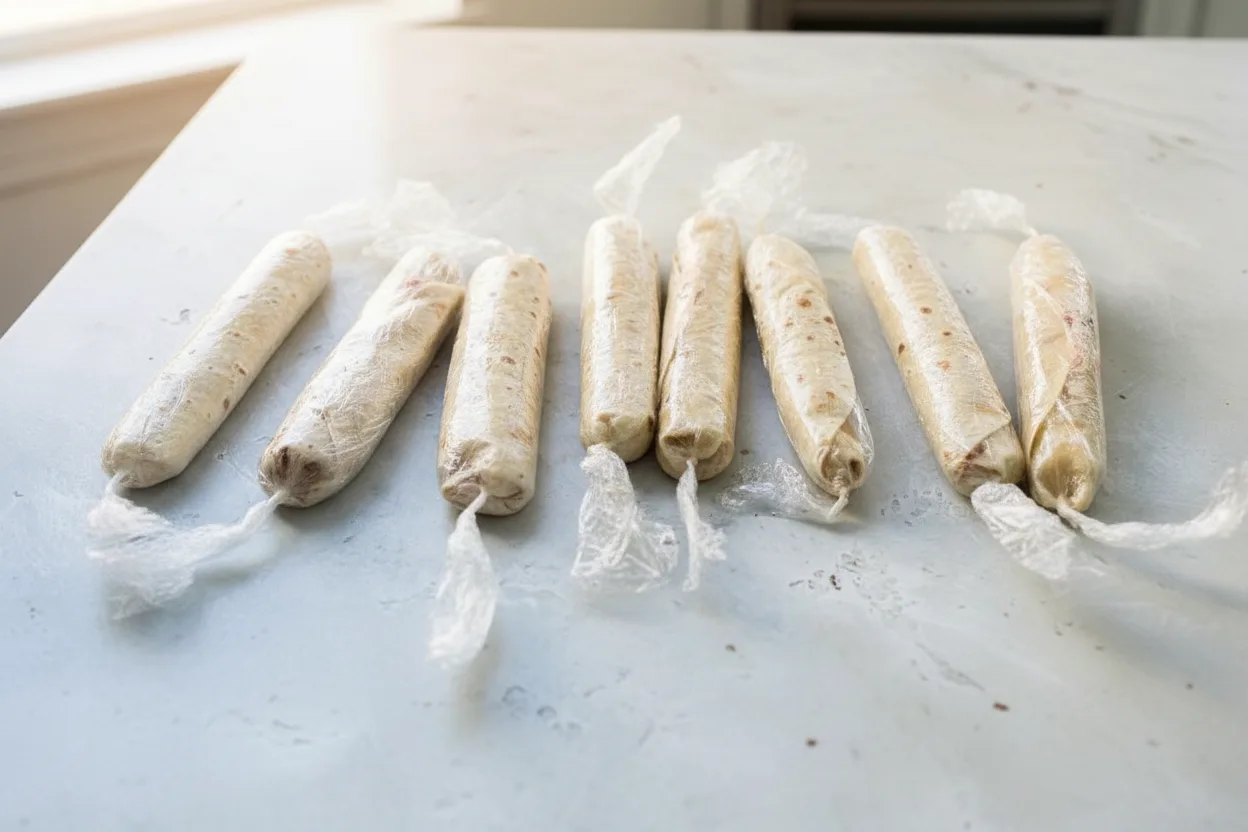 Refrigerate wrapped rolls at least two hours before slicing. Cold filling makes cleaner cuts. Additionally, overnight chilling maximizes flavor melding.