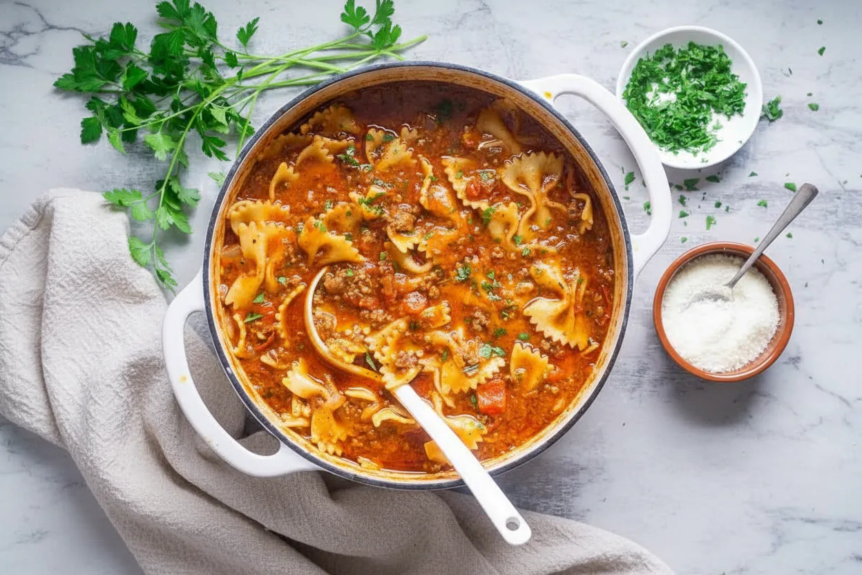 Imagine enjoying all the rich flavors of classic lasagna in a comforting bowl of soup. This delicious lasagna soup combines tender ground beef, savory tomatoes, and perfectly cooked pasta in a flavorful broth.